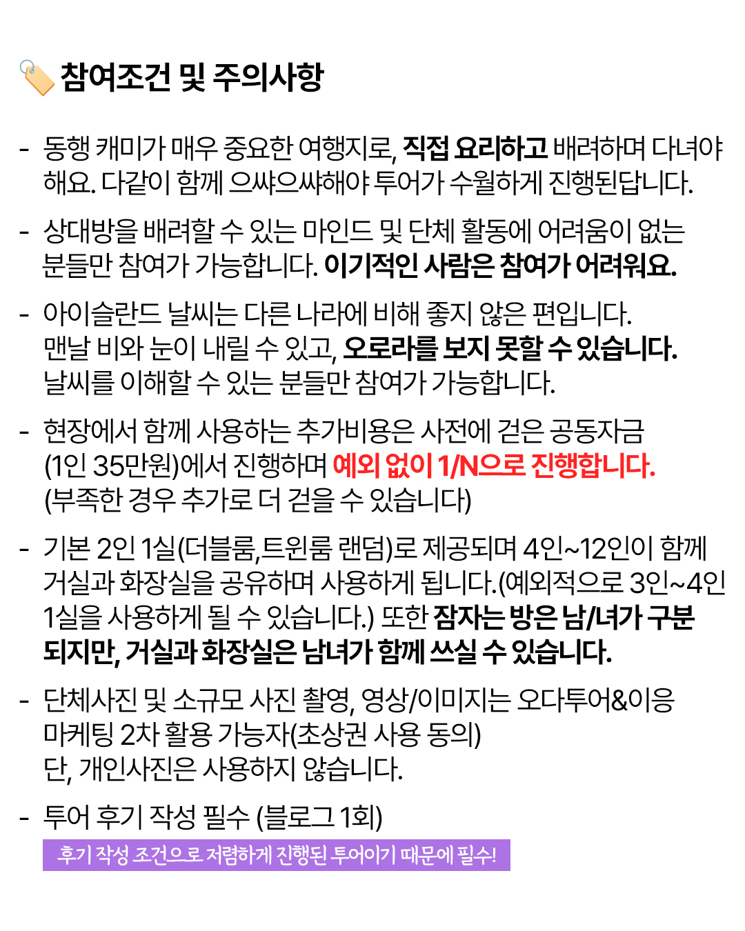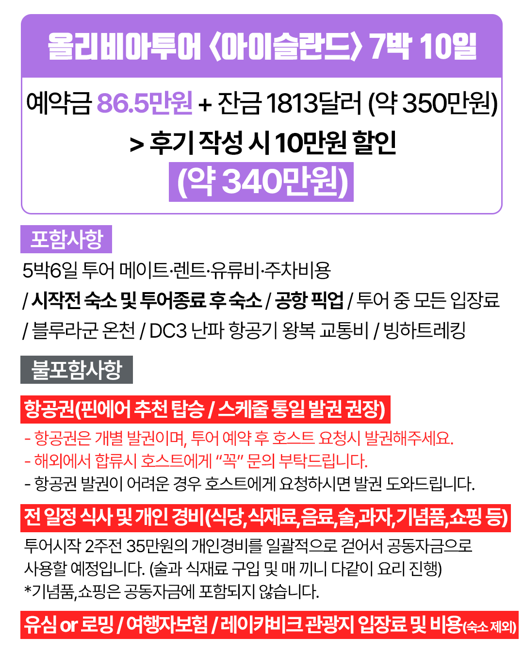 포함/불포함 내용고시