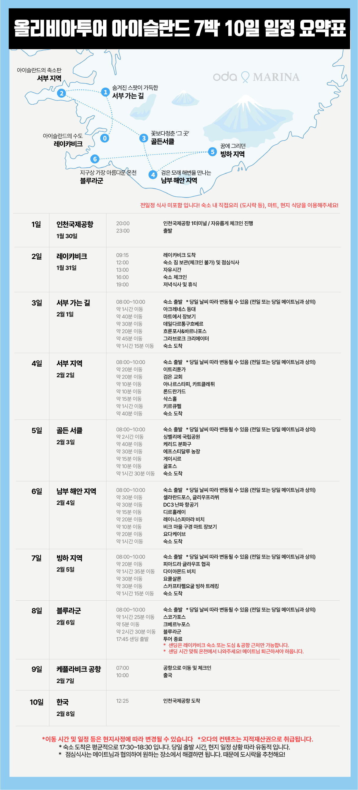 선택관광 및 대체일정