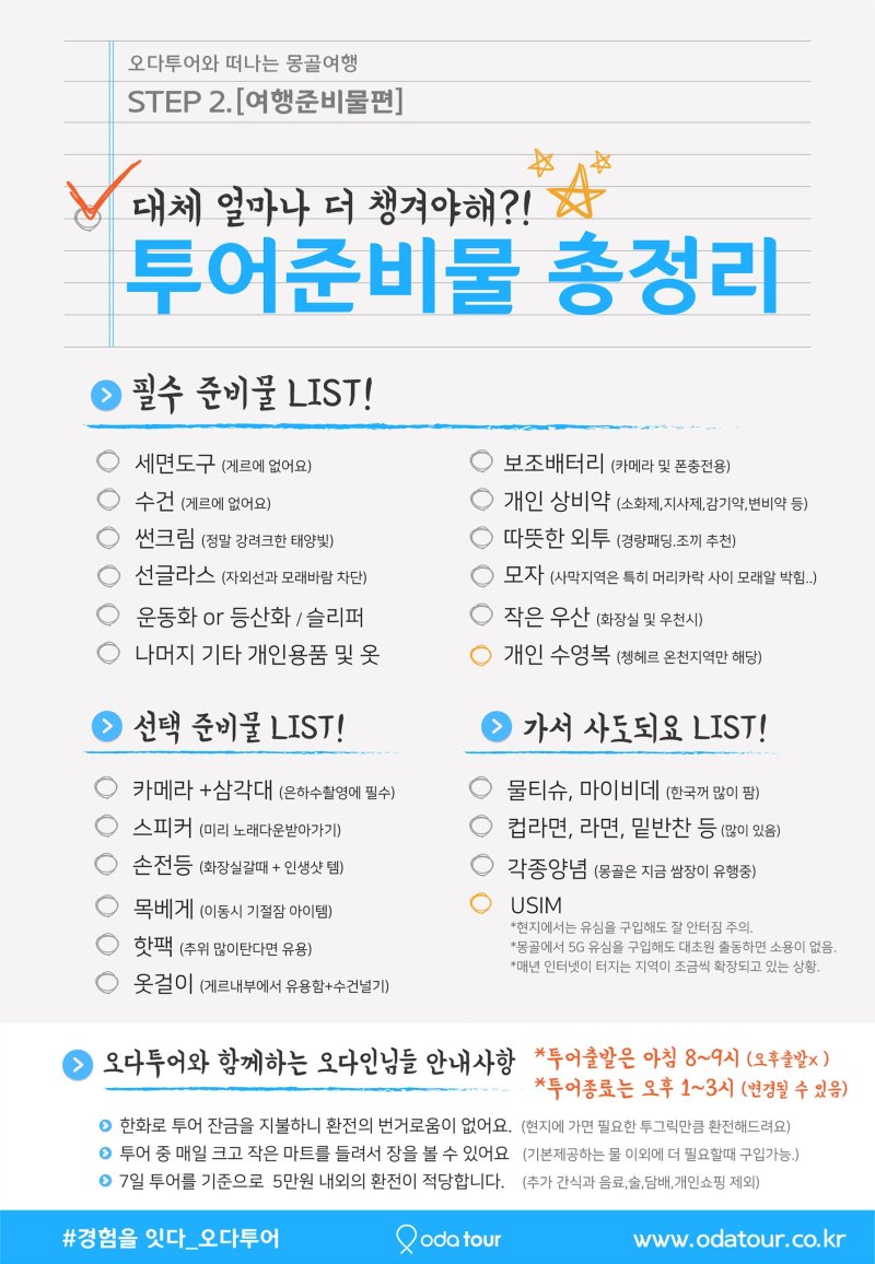 ✅오다팀의 몽골여행 준비물 추천