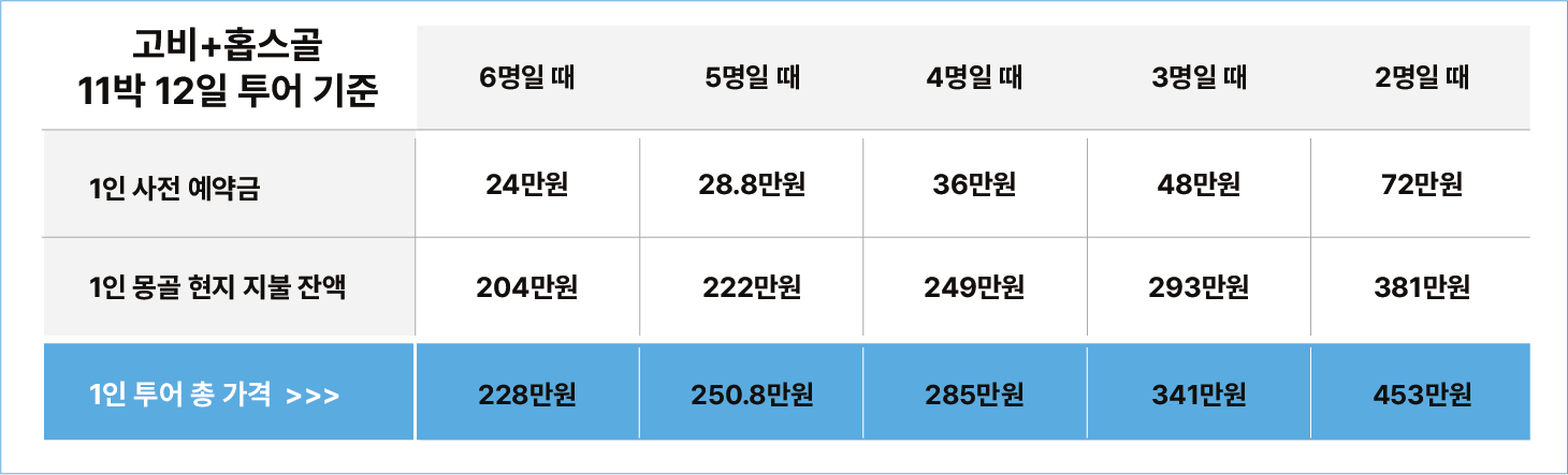 고비사막과 홉스골 11박 12일 투어