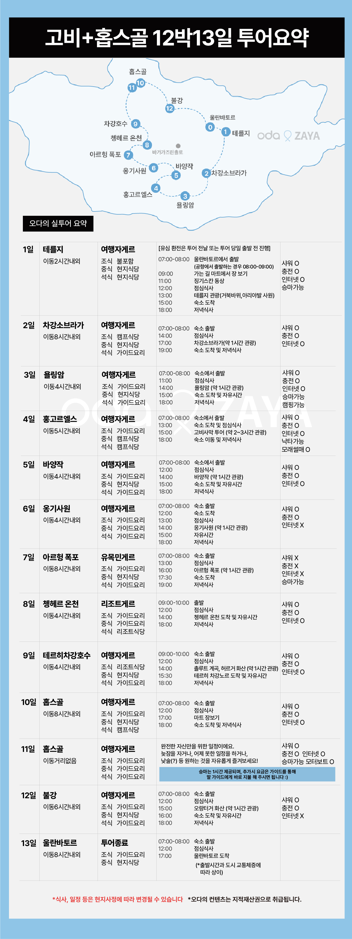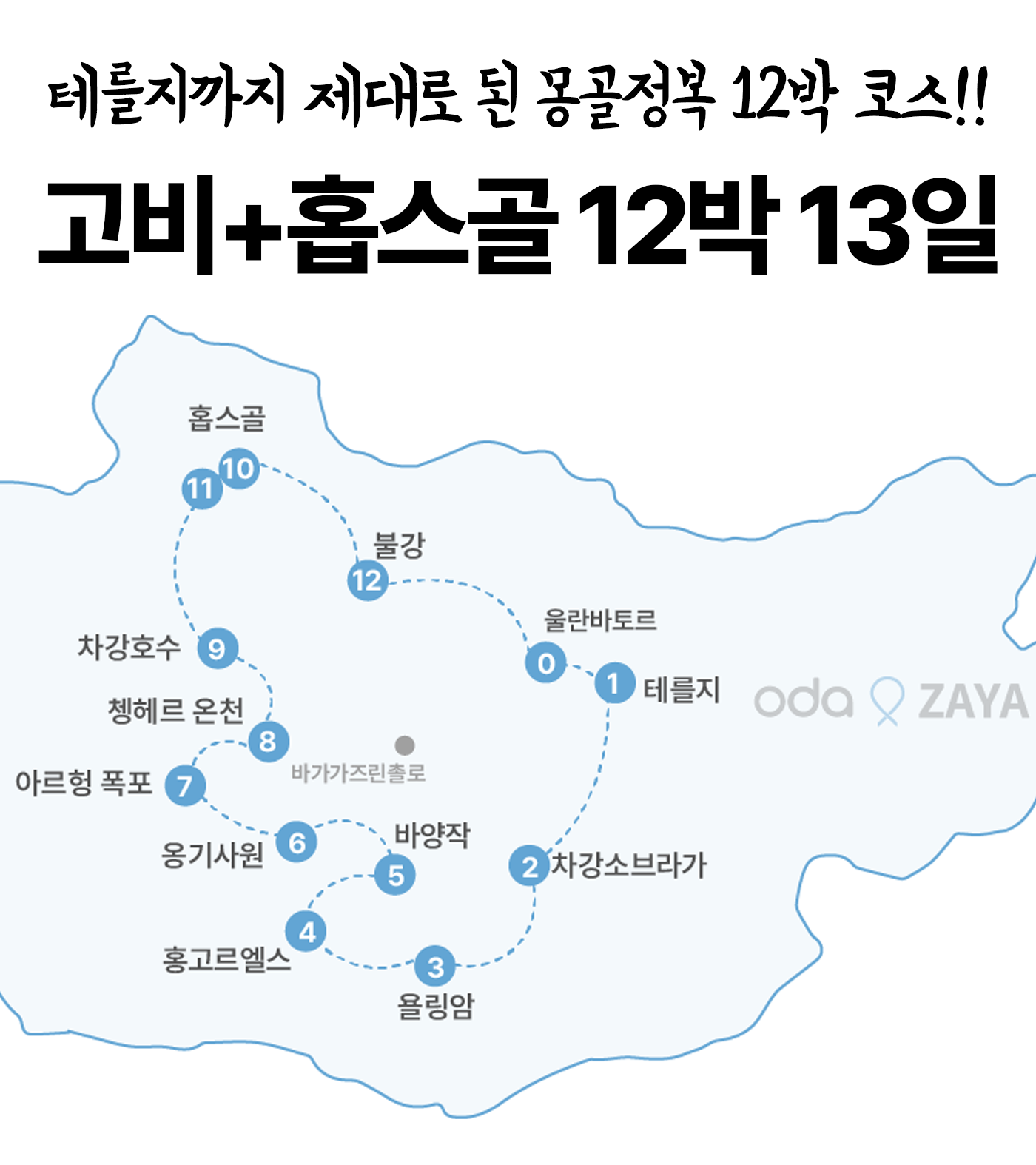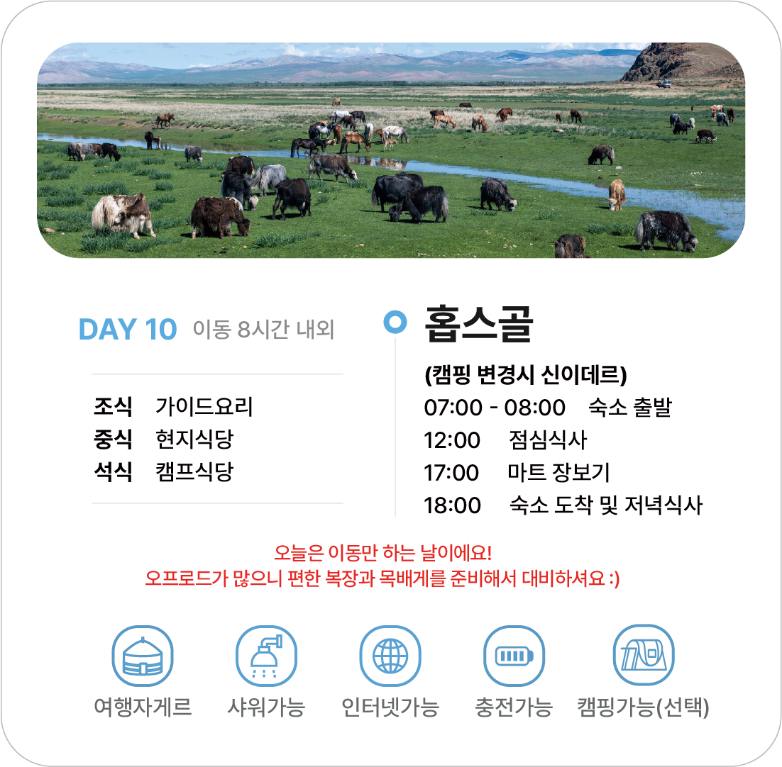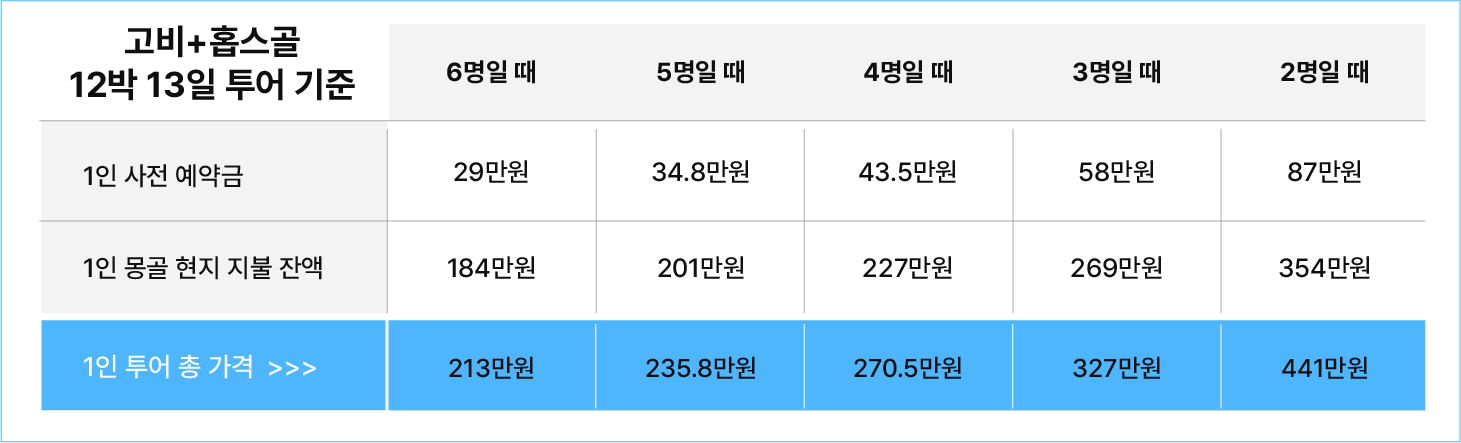 고비사막과 홉스골 12박 13일 투어