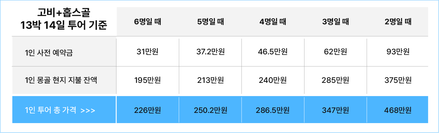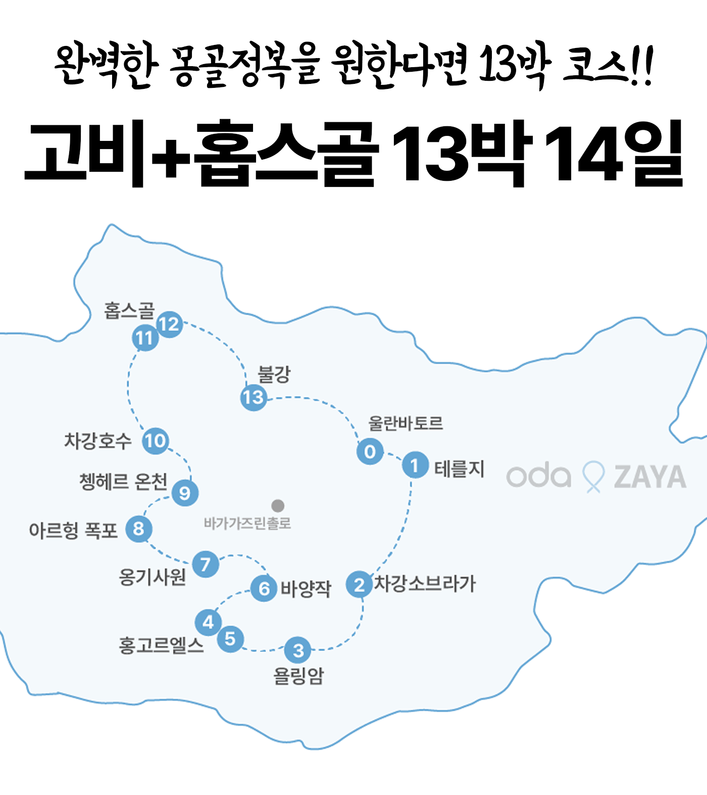 고비사막 이틀, 홉스골 이틀 머무는 13박 14일 투어