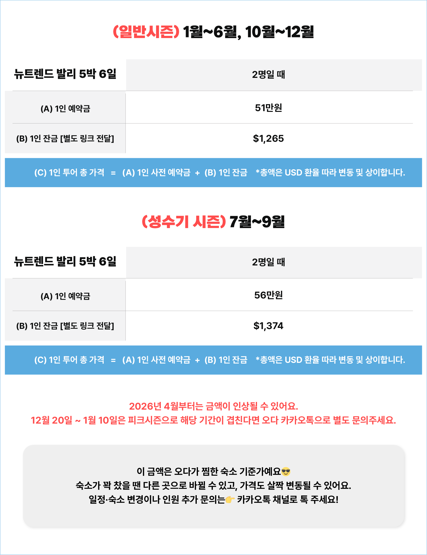 - 상품페이지 가격표에 표기 된 비용은 ‘오다숙소픽' 으로 적용 된 금액입니다.