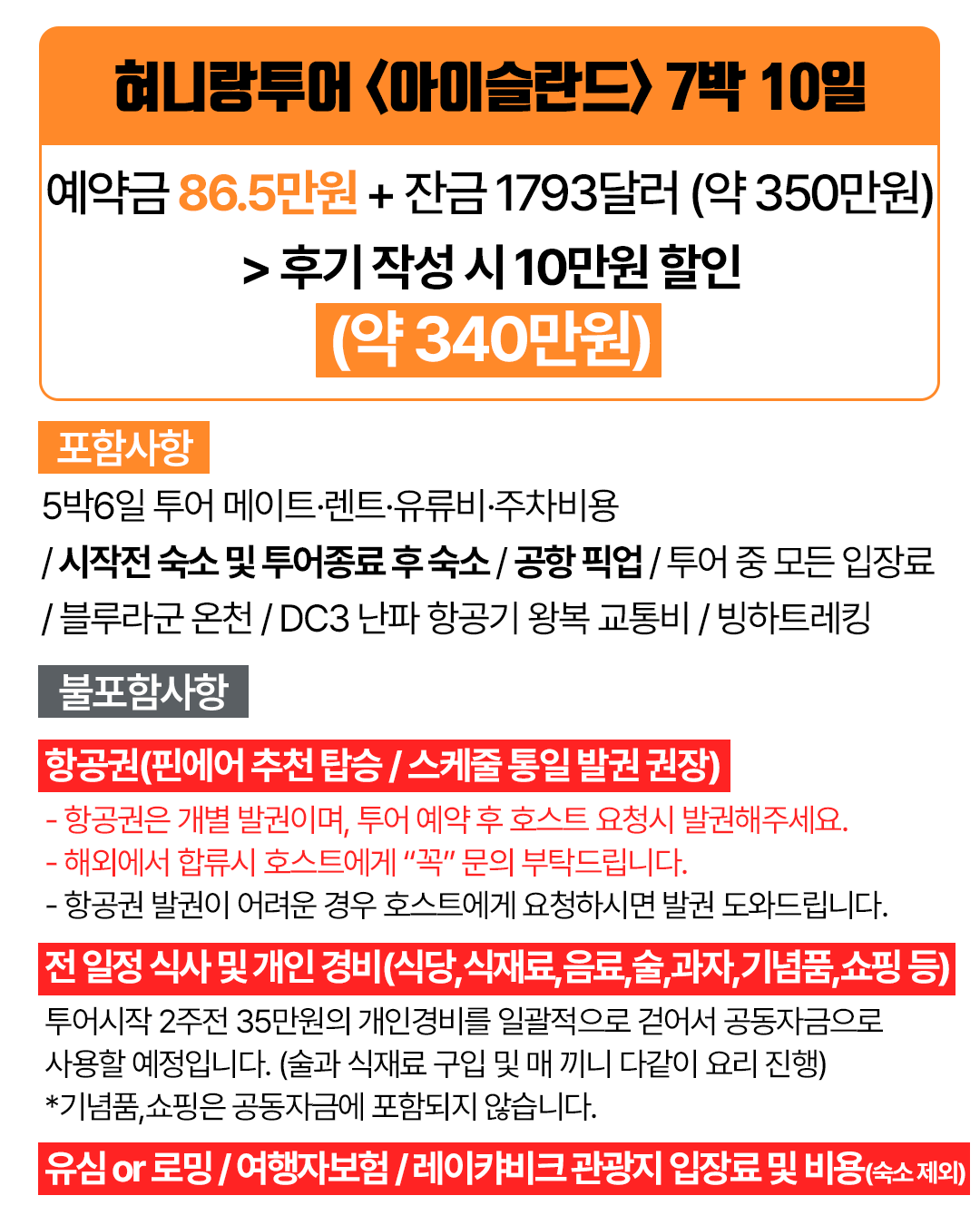 포함/불포함 내용고시