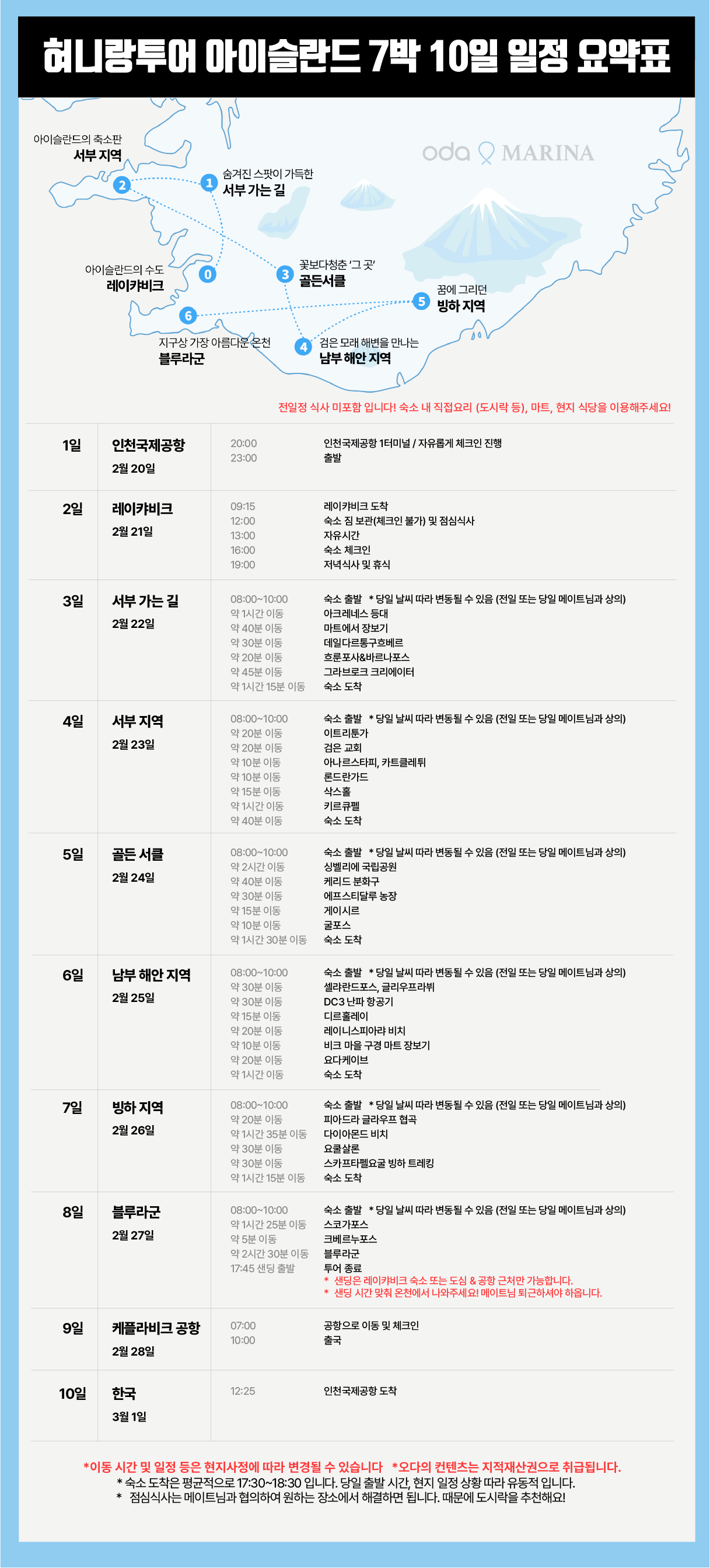 선택관광 및 대체일정