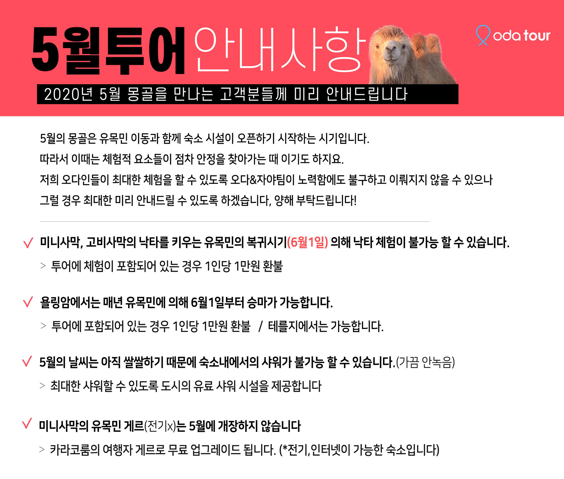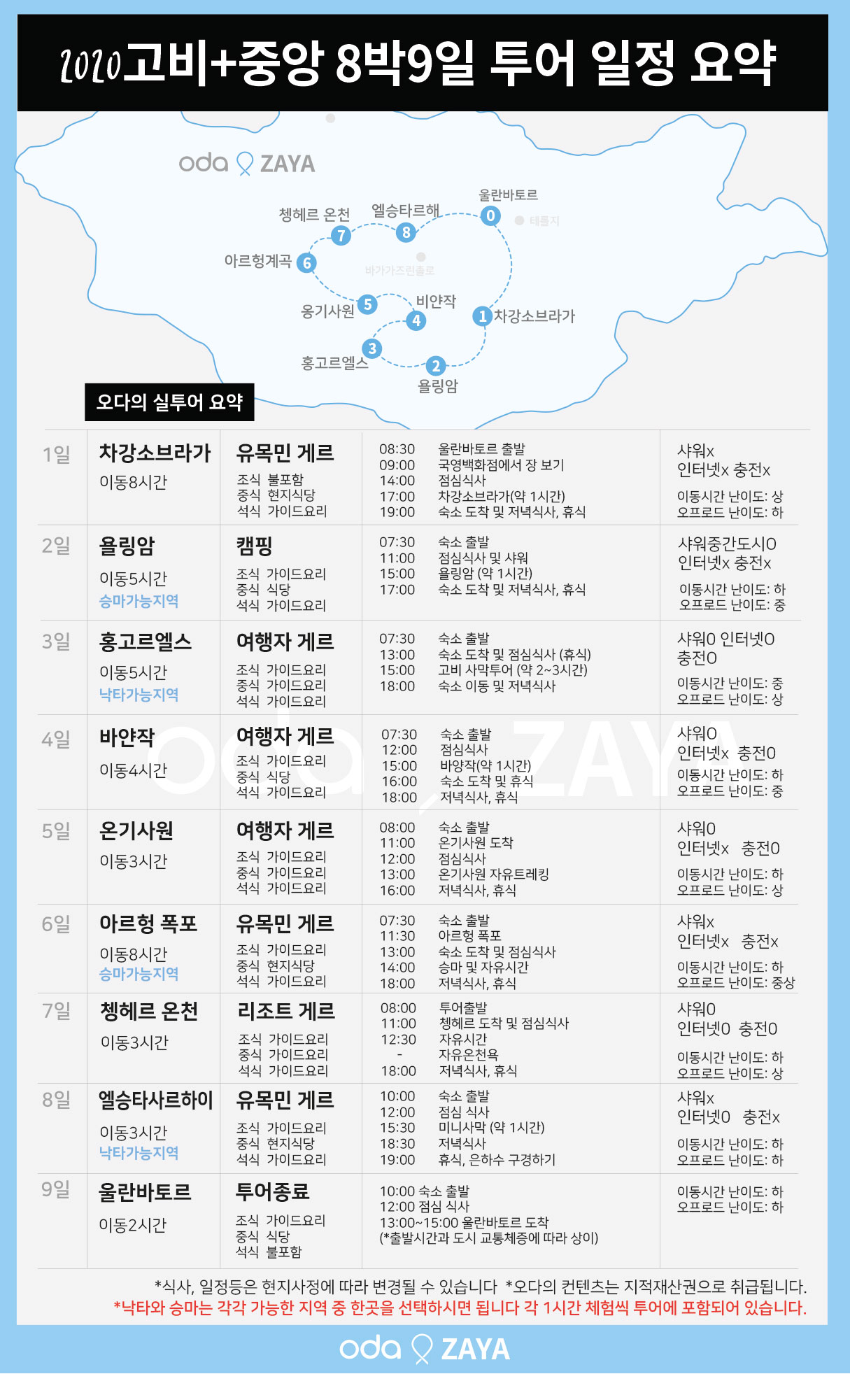 - 예약금을 제외한 잔액은 몽골에 도착한 후 자야트래블에게 투어 시작 전 한화로 지불하면 됩니다.(달러도 물론 가능!)