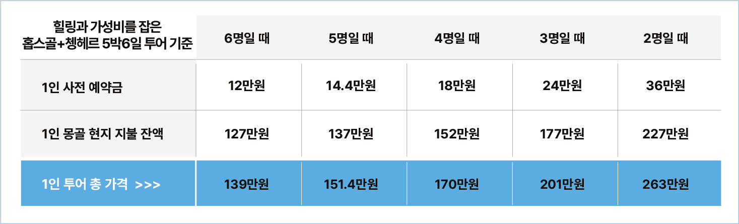 - 예약금을 제외한 잔액은 몽골에 도착한 후 자야트래블에게 투어 시작 전 한화로 지불하면 됩니다.(달러도 물론 가능!)